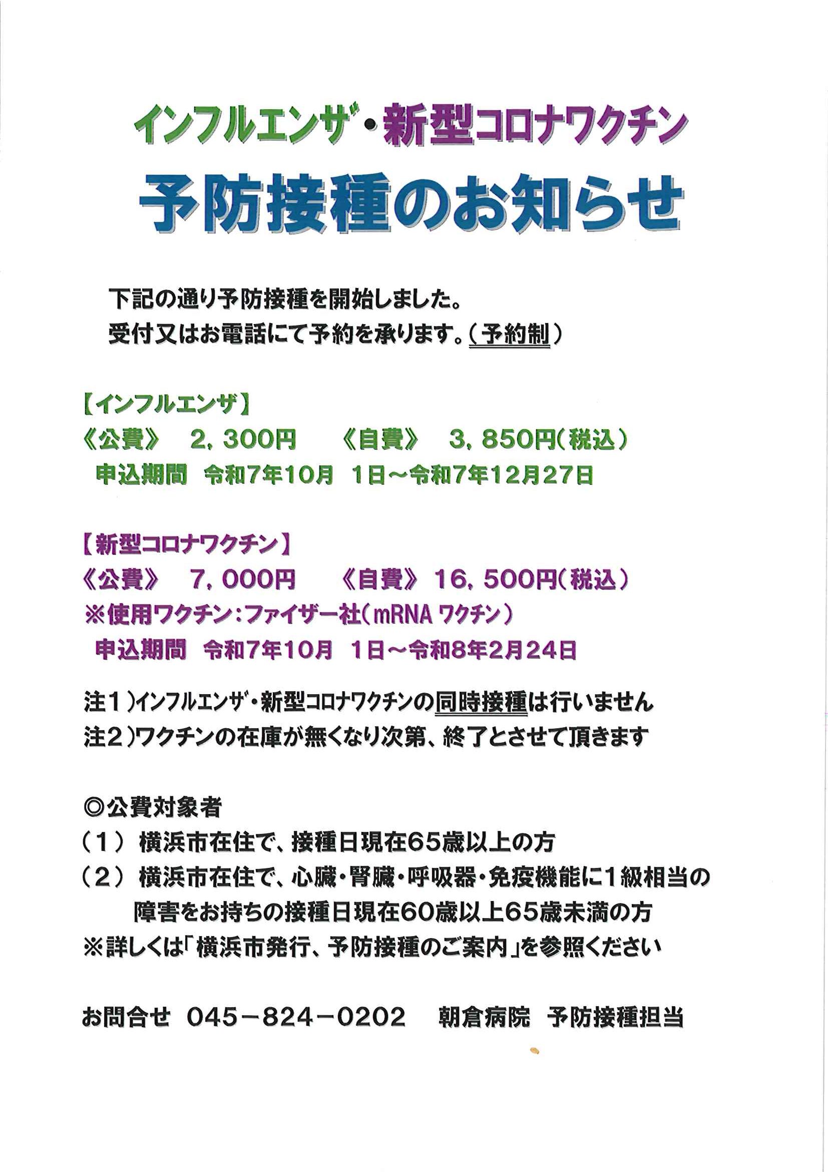 • インフルエンザ・新型コロナワクチンのお知らせ